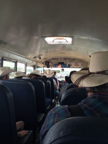 (Below) Soon we were at the park and ride, and on the bus to Frontier Days.